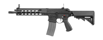 Geværet her har en udtrækkelig kolbe hvor der er plads til at fylde batteriet i. Kolben er justerbar hvilket giver mulighed for at ændre længden så den kommer til at passe endnu bedre tl dig. Derudover har geværet et pistolgreb i ergonomisk design. Den kommer med et fed front med M-LOK hvor der kan påsættes alverdens sager som man ønsker