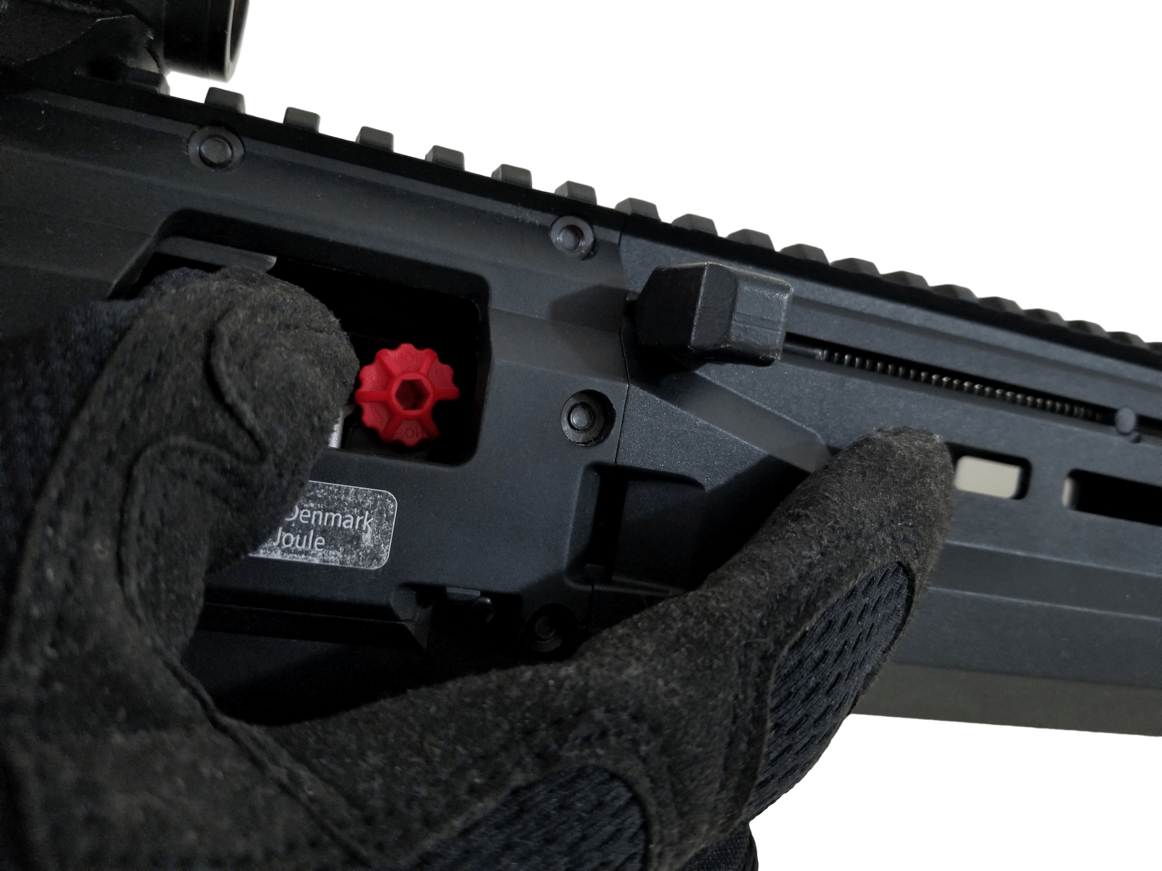 Airtech Studios har her lavet et opgraderet Hop-Up Gear til ASG's Scorpion Evo 3 A1. Opgraderings gearet her giver en nemmere og mere præcis hop-op justering.