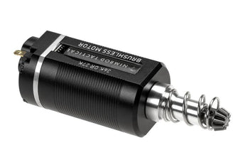 Nimrod Tactical Brushless motor har 2 justerbare hastighedsindstillinger. Afhængig af det brugte batteri kan enten 27000 omdr./min. eller 36000 omdr./min. indstilles.