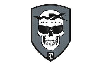 Patchet er et skull med Wiley X logo samt et par Wiley X briller
