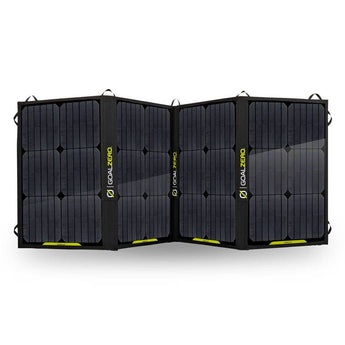 Goal Zero Nomad 100 Solpanelet er et meget let panel som er bygget op monokrystallinsk og yder 100W i et robust og sammenklappeligt panel for nemt at have den med rundt. Den kommer desuden med en smart stand sådan den kan stå op, hvilket giver bedre modtagelse af solstråler til opladning.