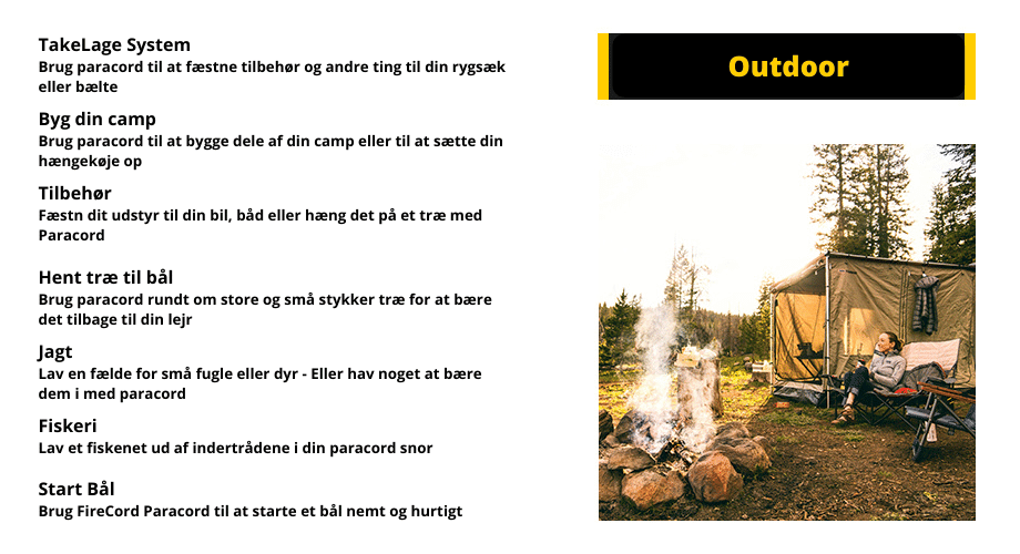 Paracord er et multifunktionelt reb som blev opfundet til amerikanske faldskærmstropper som ophængningsline. I dag kan paracord bruges til et utal af forskellige ting og sager - både for outdoor entusiater, i militæret, som airsoftere og meget meget andet.