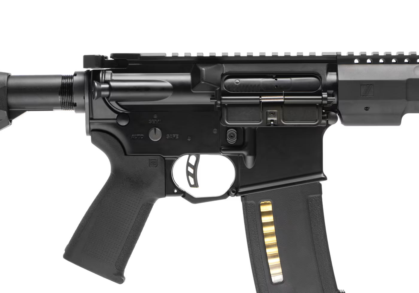 Den elegante bronzefarvede 14.5" yderløb, det CNC-fræste M-LOK Wedge Lock rail system og de licenserede ZEV-markeringer gør denne AEG til en tro kopi af den ægte vare. Alt er trimmet til høj ydeevne – fra den elektroniske MOSFET trigger til de gennemtestede PTS Enhanced Polymer-dele.