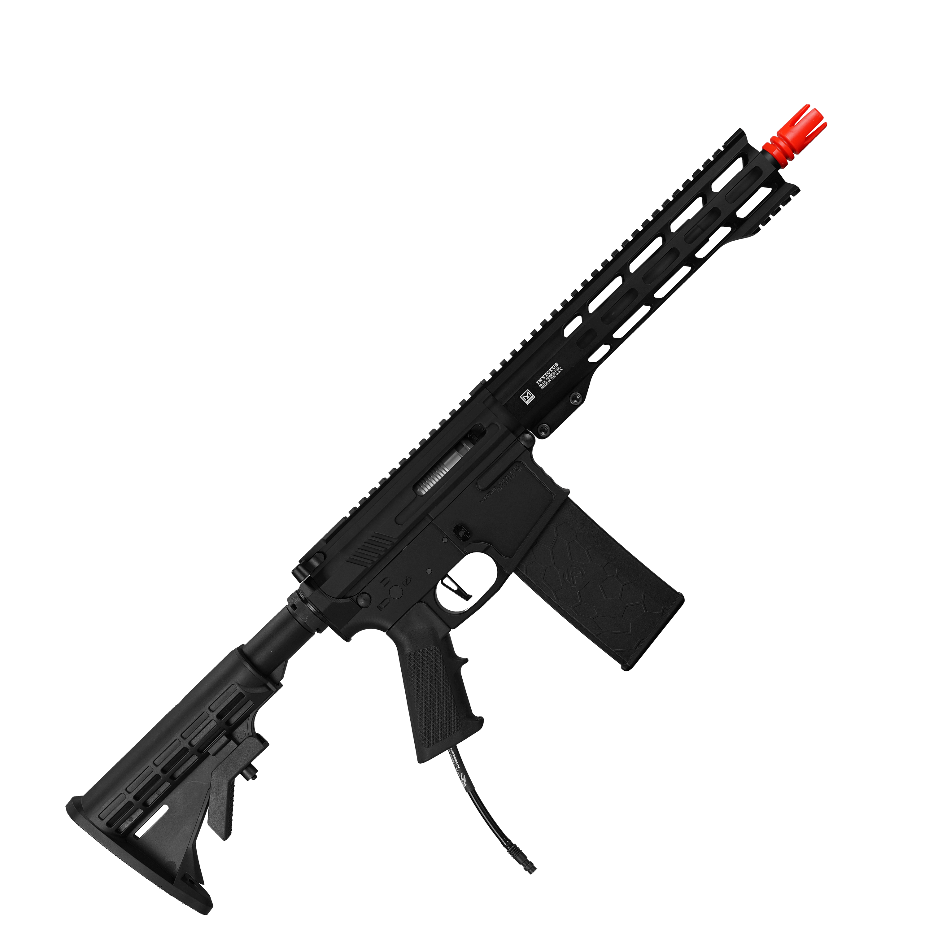 Denne udgave er i SBR konfiguration med 10,3" yderløb og 10" Invictus MLOK rail, hvilket giver den en perfekt længde til både at bruges i skoven og i tætte situationer.